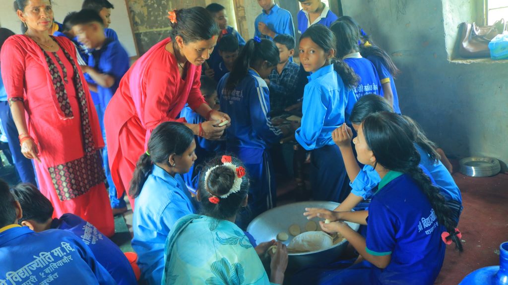 शुक्रबारको दिन बिद्यालयको चौरमा बिद्यार्थीहरुको ओहोर दोहोर । बिद्यार्थीहरु कोही हातमा बेलन र चौका लिएर हिडेका थिए त कोही कराइ बाटा र थालहरु बोकीरहेका थिए । कोही आगो फुक्न ब्यस्त थिए भने कोही दाउरा र पानी बोकीरहेका थिए । बाहिरबाट झट्ट हेर्दा भोजभतेर जस्तो देखिन्थ्यो । बिद्यार्थीहरु संगै बिद्यालय ब्यवस्थापन समितिका अध्यक्ष लोकेन्द्र रावल, वडा अध्यक्ष नगेन्द्रबहादुर शाहीले बिद्यार्थीले गरेका कामको नजिकैबाट नियालीरहनुभएको थियो ।
